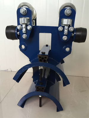 8、滑車裝置上的雙墊圈為調(diào)整墊�,當(dāng)�(dǎo)軌不合適時,把墊圈放在固定板的內(nèi)�(cè),以�(diào)整軌距的寬窄,出廠時按導(dǎo)軌為I 100*68*4.5、I 120*74*5、I140*80*5、I 160*88*6制造。非�(biāo)滑車按圖紙加工制��