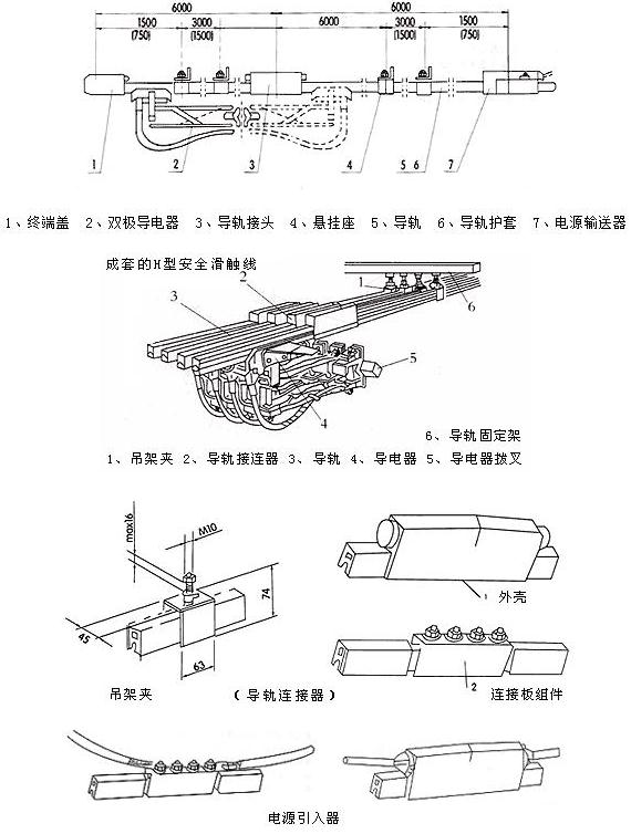 ��單極組合式滑觸線裝配示意圖及主要零部�