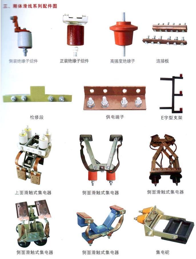 1、剛體滑觸線每根標準長度�6米,每根配絕緣子3�、連接夾板1��