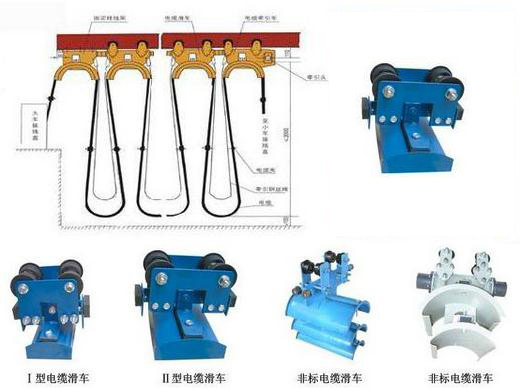 ZLGHC型工字鋼電纜滑車系列為起重機小車供電的一種導(dǎo)電形式。它有走�、支�、托板組成,將軟電纜固定在托板上,由牽引架與電纜滑車同步,從而實�(xiàn)小車供電的目的�
