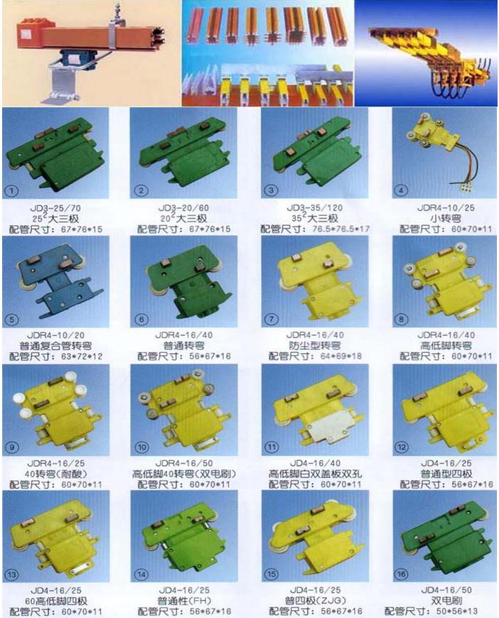 選用滑觸線集電器的時候,首選集電器最好是考慮和滑觸線相配�,不要亂用集電器,否則會影響行車的正常運行,嚴重了會燒壞滑觸�。集電器上面的靴片是由含銅碳基壓而成�,購買后要檢查與滑線的吻合型。由于集電器本身屬于易耗品,長期使用會磨損靴片,所以要定期檢查,集電器上面靴片的磨損程�,并定期更換�